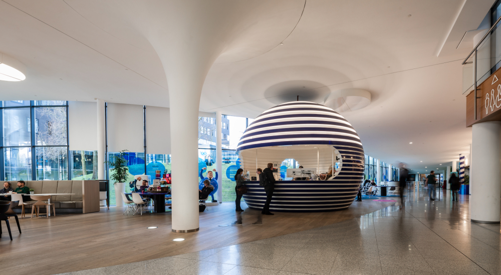 Toen bol.com in 2020 de verlichting van haar campus langs de A12 in Utrecht wilde vernieuwen, werd vanzelfsprekend gekozen voor een duurzame variant. De oude TL-technologie en armaturen van de zes kantoortorens werden een-op-een vervangen door toekomstbestendige en data-driven LED-armaturen.