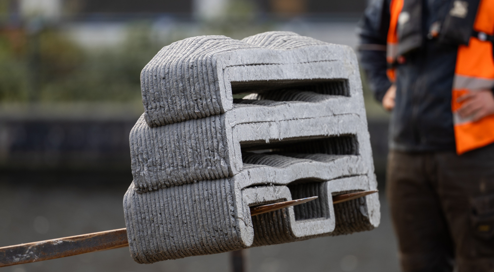 Steeds vaker vinden via additive manufacturing (3D-geprinte) gefabriceerde producten een toepassing. Deze productiemethode bespaart materiaal, biedt vormvrijheid in het ontwerp en vermindert de noodzaak tot het aanhouden van voorraad. Zo installeerde de gemeente Amsterdam recent 3D-geprinte betonnen vishotels in de grachten.