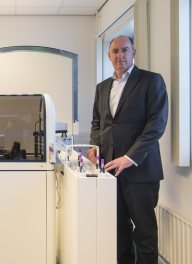 <p>Wij maken apparatuur waarmee ziekenhuis- en onderzoekslaboratoria metingen uitvoeren aan bloed. Gespecialiseerde instrumenten worden gebruikt door laboratoria voor ondersteuning van de diagnose van bloedziekten en ook voor wetenschappelijk onderzoek. De apparatuur wordt ook ingezet in onderzoeken naar medicijnen voor de behandeling van bloedziekten.</p>